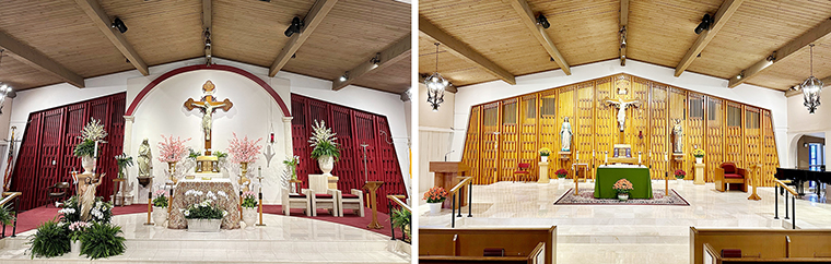 Father Lazarus Govin, pastor of St. Matthew, said that the restored crucifix now illuminates the altar space–replacing the previous greenish tone.